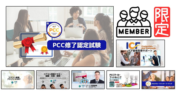 PCCグループメンターコーチング7時間と、PCC1対1メンターコーチング3時間の2つが含まれるコースです。メンターコーチングを受けるためにセッション録画と文字起こしの提出が必須です
