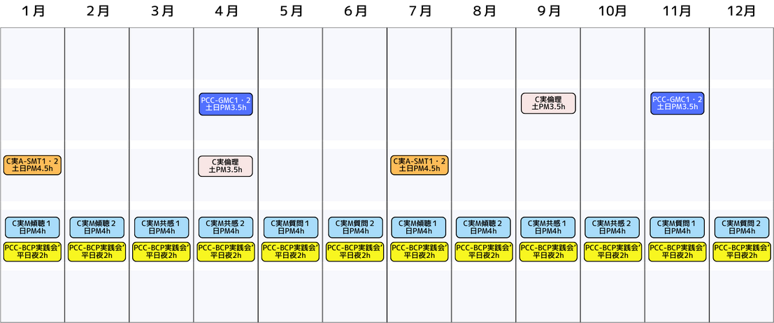 実際のセッション録画とログを見ながら、PCCマーカーに照らし合わせていくトレーニングをします。ACC修了認定でアセスメントされる項目ひとつひとつを深くみていくトレーニングです。かなりハードですが、確実に実力がつきます。相当な上級コースです。