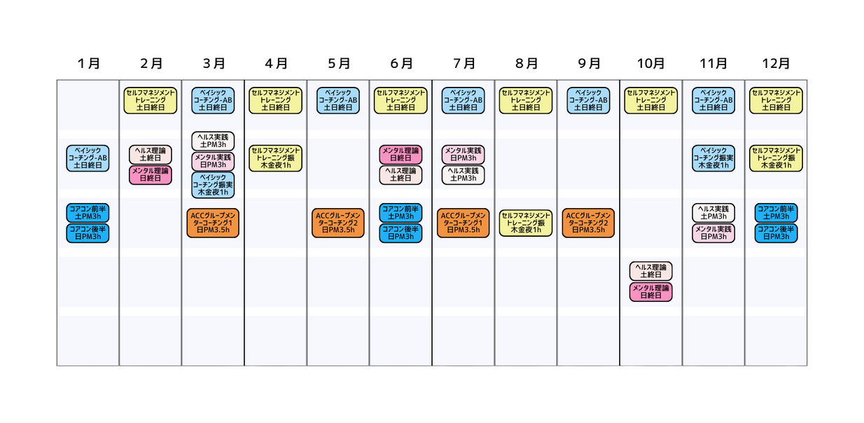 ACCグループメンターコーチング7時間と、ACC1対1メンターコーチング3時間の2つが含まれるコースです。メンターコーチングを受けるためにセッション録画と文字起こしの提出が必須です